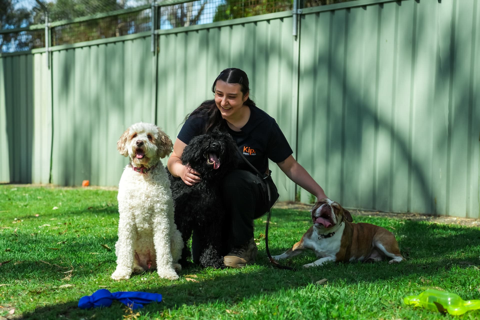 Our dog Boof had a bad experience at the pound we adopted him from, and we haven't felt comfortable leaving him with anyone other than family and friends since. But after six years, the time came when we needed to put him in a kennel for a few days, and Kip did a fantastic job! The staff were friendly and caring; he was immediately put at ease by how affectionate they were. Added extras like playtime, bushwalks and treats helped keep him distracted and happy. Our minds were at ease due to the regular photo and videos Kip staff sent us. This staff photo says it all! We have already booked him in for another stay. Highly recommended!